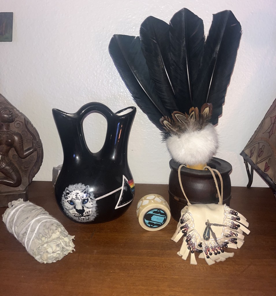“I would recommend that you create a special space, alter, or spot where you go every day to ground yourself. On this alter, you can place special objects, sacred elements, herbs and or pictures of ancestors and loved ones. As you continue to pray, your alter will gain energy and spirit. In many traditions, people incorporate the use of herbs (sage, copal, tobacco, and/or incense) and sounds (flute, drums, nature sounds) to further engage their senses, connect with their genetic sound vibrations of ancestors, and bring themselves into focus with their present state of consciousness.”