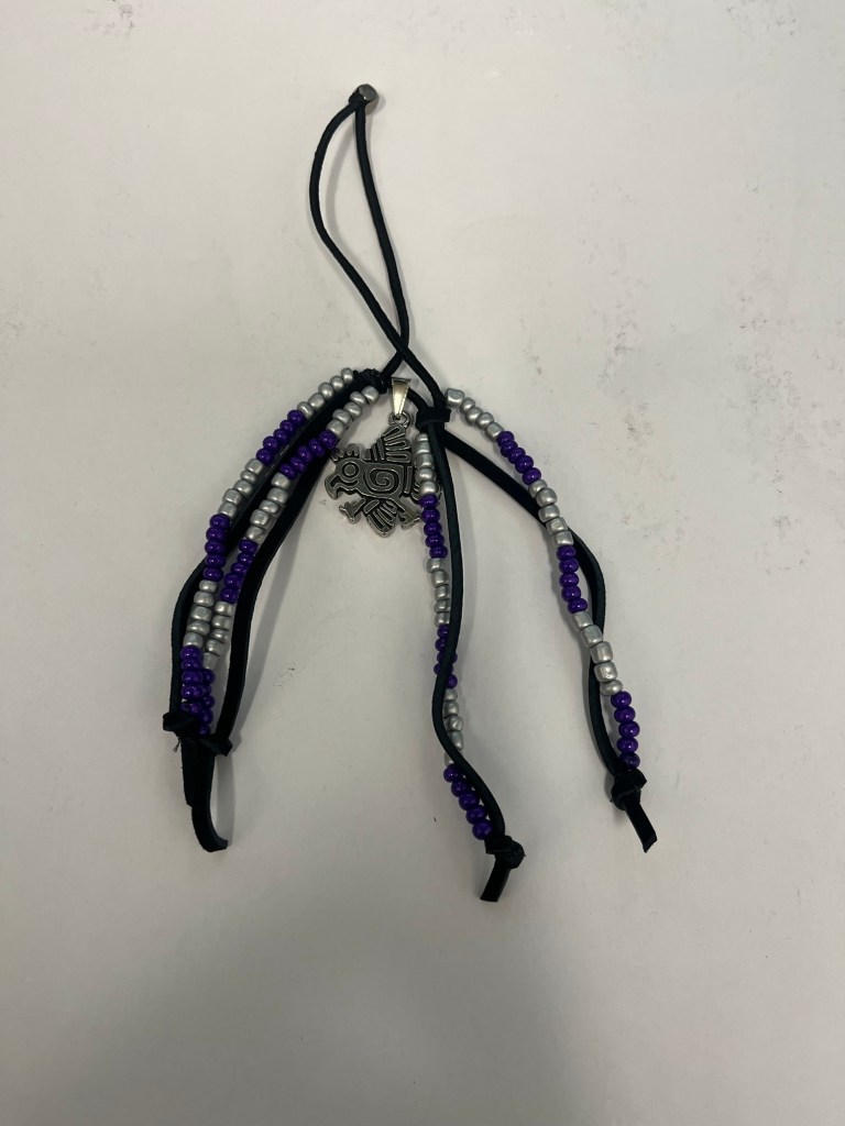 “I am at a point in my career where making a difference and having an impact is paramount. Today, One of our social workers was planning a visit to an indigenous youth and wanted to develop a connection. This youth is transexual and 9-years old. I encouraged the social worker to connect with the youth’s tribe who offered to provide him a quilt. I also suggested he visit 8th Generation in Seattle to purchase a blanket for the youth. She picked a purple toned blanket. I also encouraged the social worker to connect with the youth’s identity by gifting her a hair accessory. The social worker was not sure what to get so I offered to make her something as an indigenous elder. Below is what I created and I hope this gift will help her be seen as she sees herself.” (Heather Houston 1-28-26)
