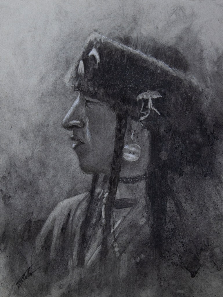 Blackfeet Warrior (Drawing w/Charcoal Powder); By: Jason Tako