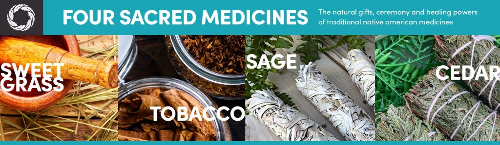 The origins of Native American healing practice and ceremony are as diverse and rich as each of the hundreds of American tribes themselves. Nature has provided gifts that have been an important thread between native people and their spirituality. The Four Sacred Medicines (Tobacco, Cedar, Sage & Sweetgrass) have a historical and continuing cultural value to the spirit, physical & emotional well-being of native peoples.