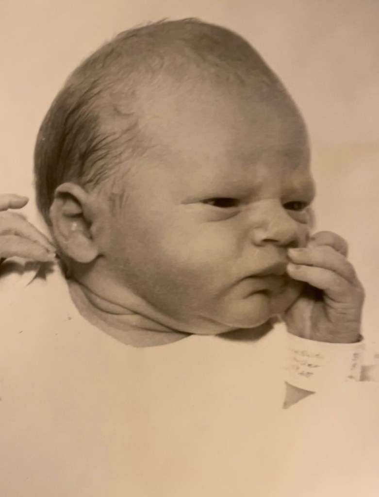 “My story began at 3-4 years of age at my maternal grandmother’s house. My parents were sitting on the blue couches holding my new baby brother and sharing newborn pictures of my brother and myself while surrounded by my maternal aunts and uncles. Somebody mentioned how cute my brother was and my parents beamed with pride. Someone said out loud, “He is a perfect Gerber Baby.” I knew who the Gerber Baby was from the baby food jars we had on hand. I thought how nice to know my brother is so cute. I was proud to be his big sister.”